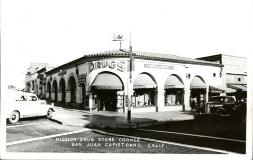 Title (ebay affiliate link): Vintage RPPC Postcard San Juan Capistrano CA "Mission Drug Store Corner"