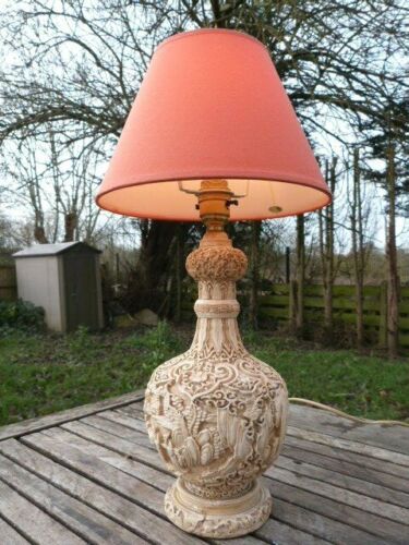 Title (ebay affiliate link): LOVELY VINTAGE ORNATE ORIENTAL CERAMIC STONE TABLE LAMP WITH SHADE.