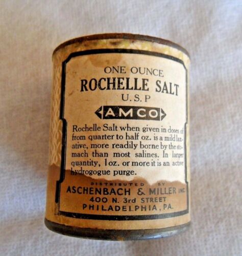 Title (ebay affiliate link): AMCO Antique U.S.P. Rochelle Salt apothecary medical tin vintage One Ounce