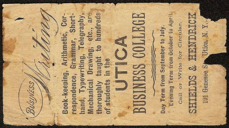 CONFEDERATE ADVERTISING NOTE UTICA BUSINESS WRITING COLLEGE SHIELDS & HENDRICK