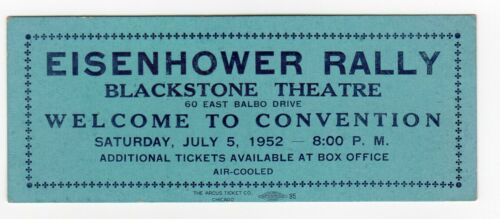 Title (ebay affiliate link): Eisenhower Rally Ticket Blackstone Theatre Chicago Convention 1952