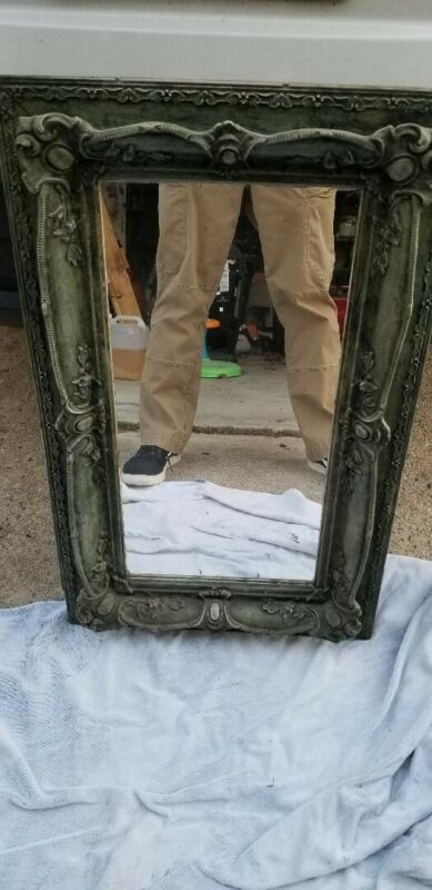 VINTAGE 1958 MIRROR CARVED WOODEN FRAME 32x19.5 inch
