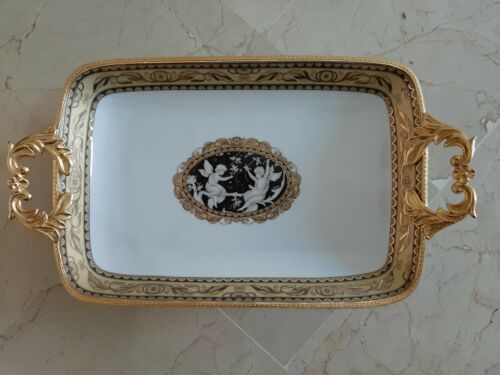 old porcelain bowl platter centerpiece art deco with handles European style1850