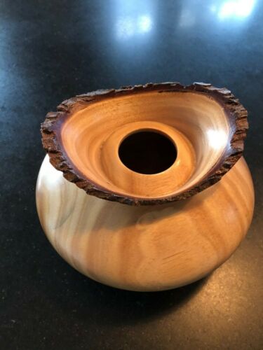 VINTAGE HAND TURNED WOODEN BOWL VASE SIGNED HAND MADE LIVE EDGE