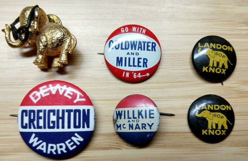 Lot of Goldwater campaign elephant and other presidential campaign buttons pins