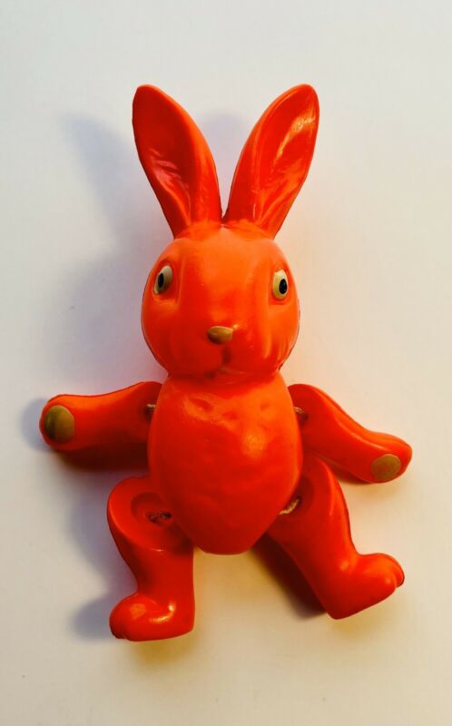 Title (ebay affiliate link): Antique Vintage Japan Red Celluloid Jointed Bunny Rabbit DOLL Rattle Crib Toy