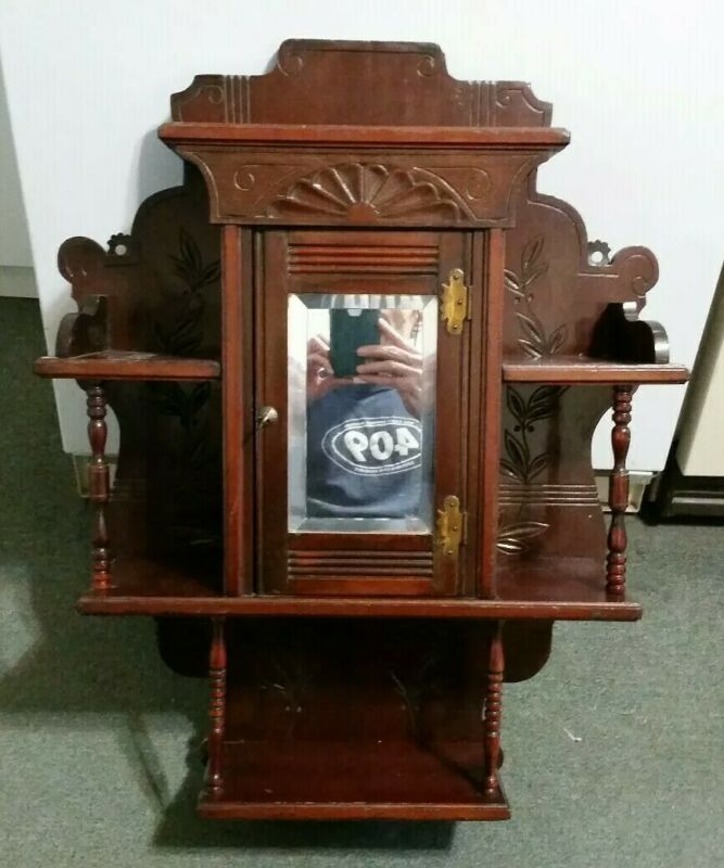 Title (ebay affiliate link): Art Nouveau Mahogany Wall Curio Cabinet With Mirrored Door,1890''s