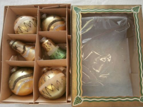 Title (ebay affiliate link): BOX OF 6 BEAUTIFUL VTG ANTIQUE WEST GERMANY CHRISTMAS ORNAMENTS BELLS & BALLS