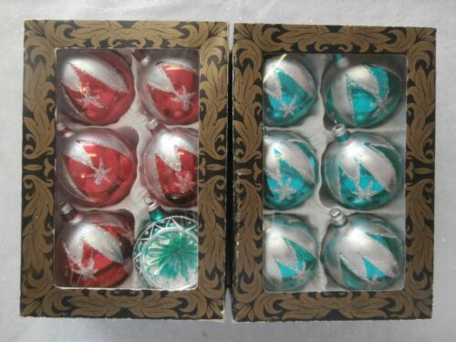 2 BOXES BEAUTIFUL VINTAGE ANTIQUE WEST GERMANY CHRISTMAS ORNAMENTS RED & AQUA