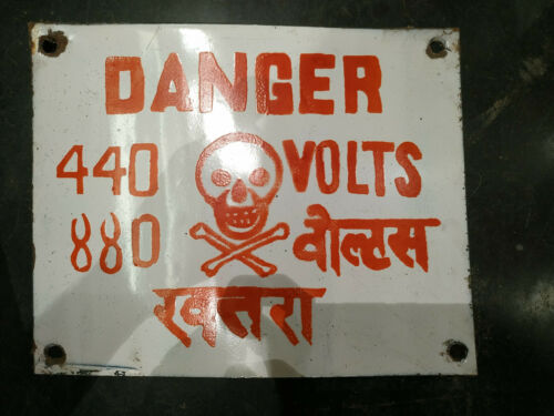 VINTAGE PORCELAIN ENAMEL SIGN DANGER 440 VOLTS 8 x 10 inch