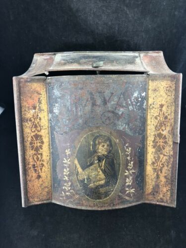 Title (ebay affiliate link): ANTIQUE VICTORIAN GROCERY STORE TIN DISPLAY COFFEE CONTAINER 1880S JAVA