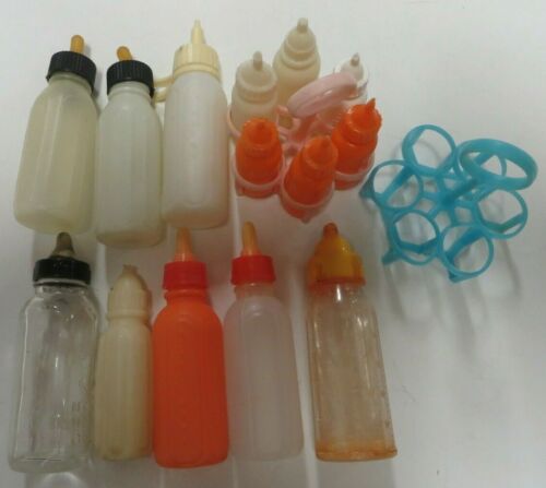 Vintage Lot Baby Doll BOTTLES Toy Plastic Glass Holders Magic Nurser Evenflo