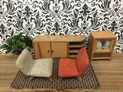 Title (ebay affiliate link): Vintage GERMAN Lot MCM Dollhouse Miniature Wood Doll Furniture Chair Credenza TV