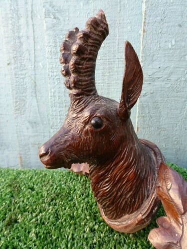 SUPERB 19thC BLACK FOREST WOODEN OAK CARVING: DEER TYPE HEAD WITH ANTLERS c1880s