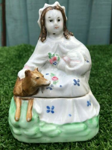 SUPERB 19thC STAFFORDSHIRE RED RIDING HOOD FIGURINE WITH WOLF TRINKET POT c1880s