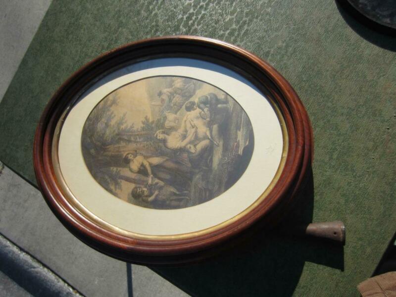 LARGE WALNUT VICTORIAN OVAL FRAME-WITH OLD PRINT-SHEEP SHEARING
