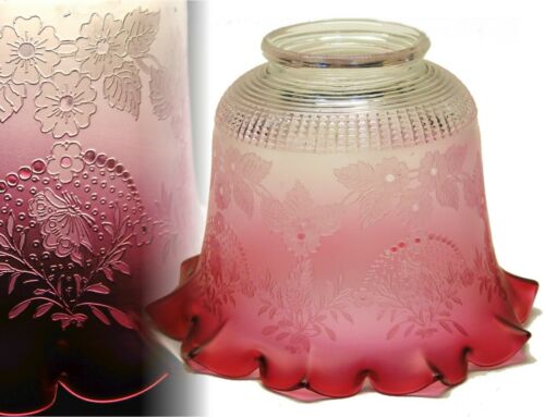 Title (ebay affiliate link): Vintage/Antique Victorian Etched Cranberry Glass Tulip Shade Gas or Bridge Lamp