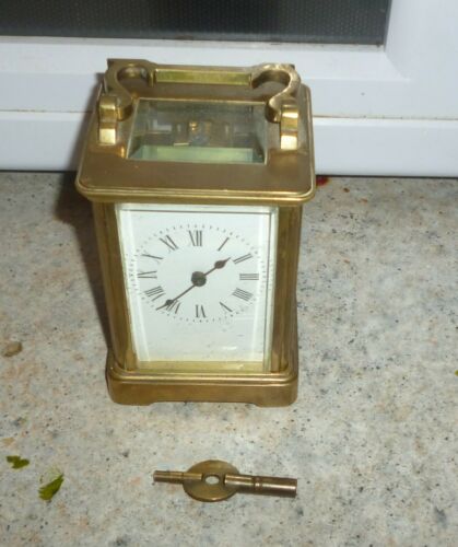 GENUINE ANTIQUE BRASS CARRIAGE CLOCK WITH KEY NO RESERVE