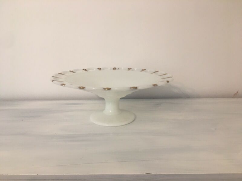Title (ebay affiliate link): Vintage White Milk Glass Pedestal/Footed Fruit Bowl Compote Lace Edge With Gold