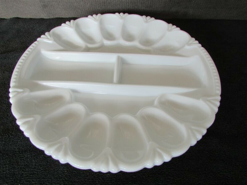 Large White Milk Glass Deviled Egg and Cracker Plate D-21