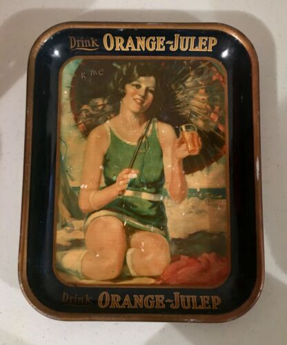 Title (ebay affiliate link): RARE ANTIQUE ORANGE JULEP SERVING TRAY COSHOCTON OHIO ART WORKS NICE GRAPHICS