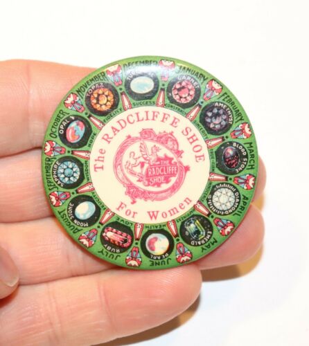 Title (ebay affiliate link): Antique RADCLIFFE SHOE Birthstones Celluloid Advertising Pocket Mirror