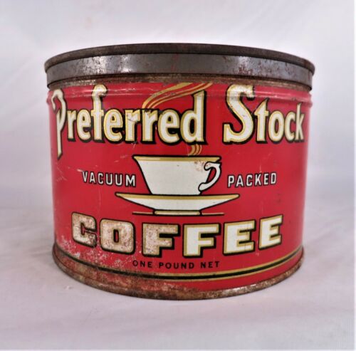 1930''s Preferred Stock Coffee Tin Can General Grocery Co Portland Bend Eugene OR