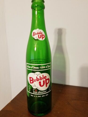Title (ebay affiliate link): Vintage Bubble Up Pure Pleasure Coca Cola 10 oz Green Glass ACL Soda Pop Bottle