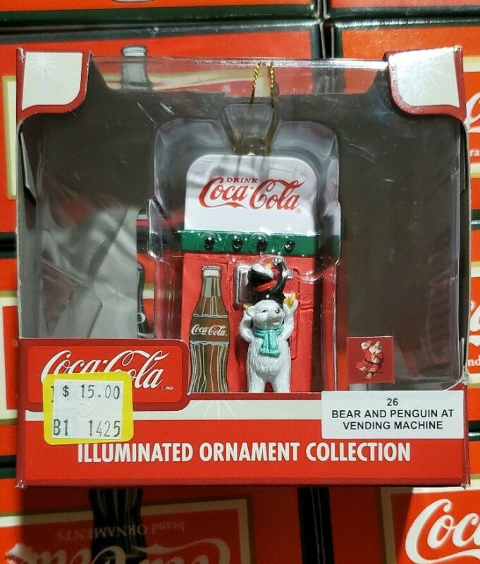 Title (ebay affiliate link): Bear and Penguin Vending Machine #26 Coca Cola Illuminated Ornament Christmas