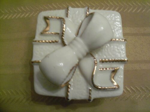 Title (ebay affiliate link): Square 3" Ceramic Gift Box & Bow Trinket Box White with Gold Trim