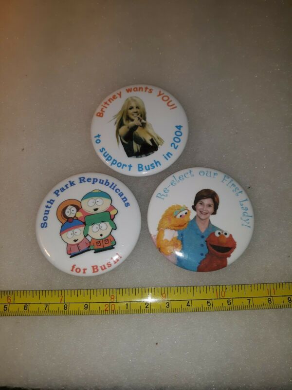 Pin Back Political 1996 Button Bush South Park Britney Spears sesame Street