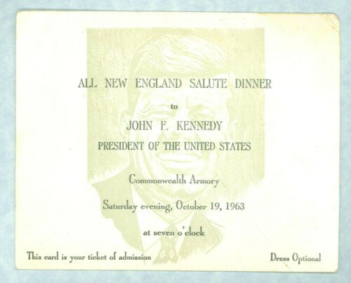 Title (ebay affiliate link): 1963 President John F. Kennedy Boston New England Salute Dinner Admission Card