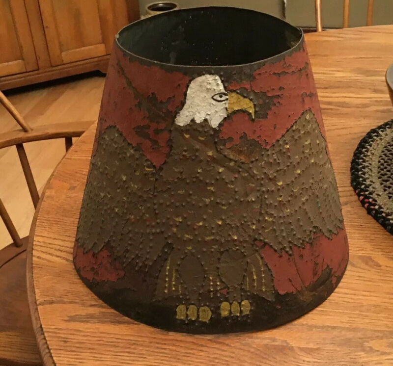 Title (ebay affiliate link): AARP Folk Art Pat Broyles Handmade Punched Tin Shade Signed And Dated