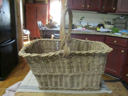 ANTIQUE LARGE BASKET WITH WOODEN BOTTOM--NO BREAKES IN THE WEAVING