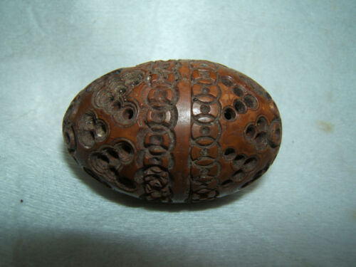 antique carved wooden wood walnut sewing egg 19th century 1800s vtg old