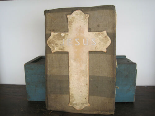 Title (ebay affiliate link): Old Primitive Swedish Fabric Covered Hardback Book with JESUS and a Cross AAFA