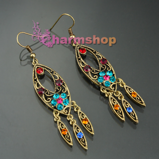 Title (ebay affiliate link): Gold Tone Rhinestone Dangle Antique Pierced Earring New