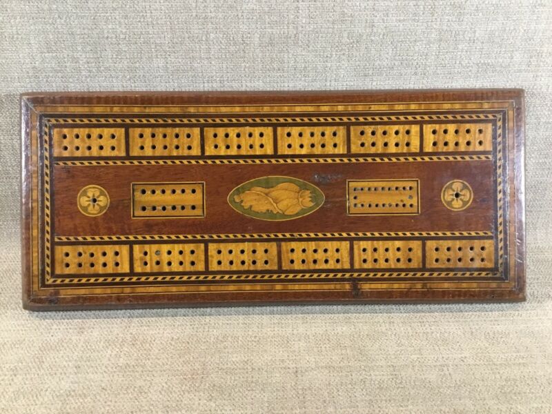 REAL American Federal INLAY Antique Wooden Cribbage Gameboard Early Game Board