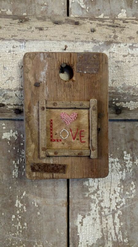 Title (ebay affiliate link): EARLY INSPIRED PRIMITIVE HANDSTITCHED VALENTINE''S DAY SAMPLER LOVE PINK HEART