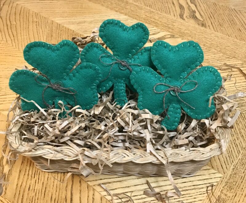 PRIMITIVE ST. PATRICKS DAY SHAMROCKS. BOWL FILLERS. ORNIES