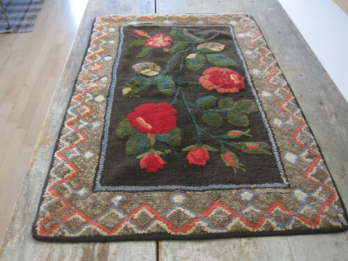 Title (ebay affiliate link): Vintage Primitive Fabric Hooked Rug Handmade American Country find AAFA