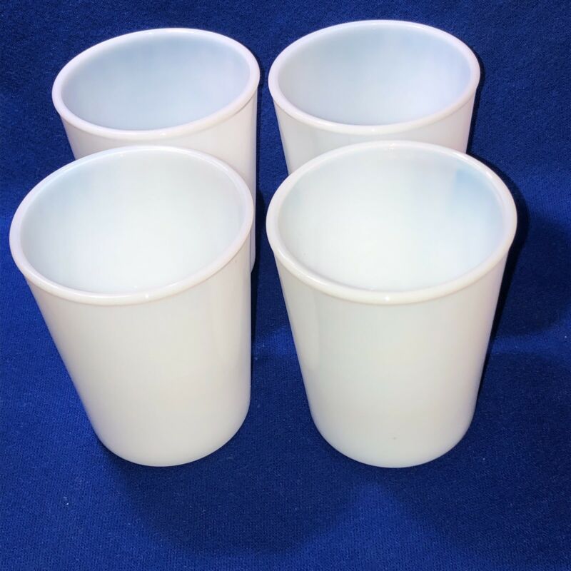 Title (ebay affiliate link): Vintage Set of (4) Opalescent White Milk Glass 3-1/2" Tumbler Juice glasses