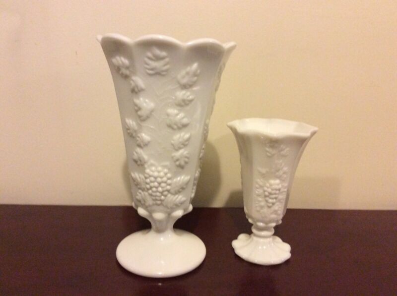 Lot Of Two Vintage Milk Glass Vase With Grape Desighn