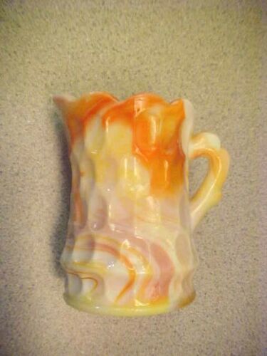 VINTAGE AKRO AGATE SLAG GLASS CREAM PITCHER W/ORG. KANAWHA DUNBAR, W. VA. TAG