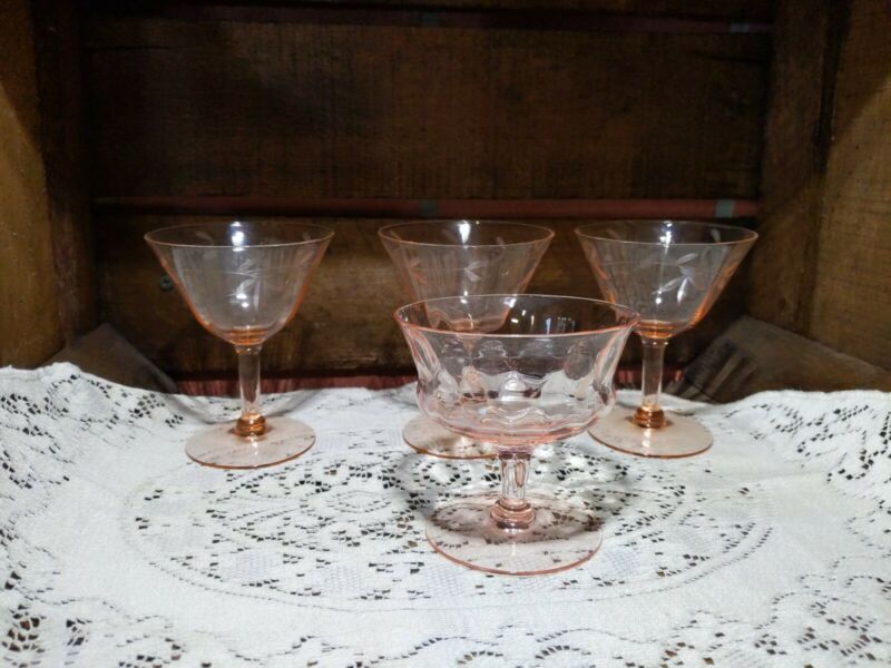 Title (ebay affiliate link): Pink Depression Custard Fruit Dessert Wine Champagne Footed Dishes Stemware - 4