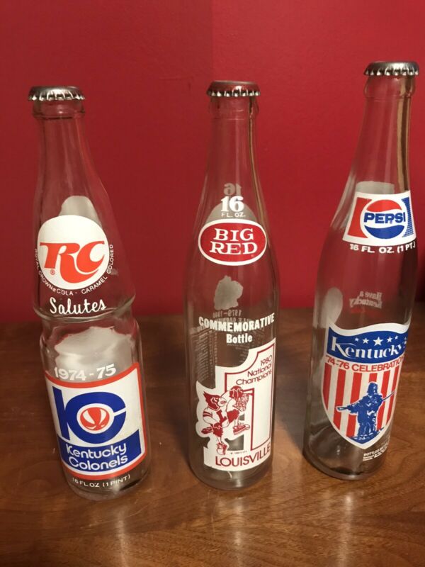 Title (ebay affiliate link): 3 Soda Bottles Big Red Louisville Cardinals 1980, Kentucky Colonels RC Pepsi