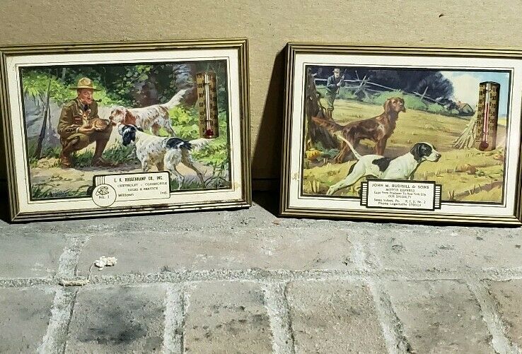 Title (ebay affiliate link): Two Vtg 1950''s bird dog, hunting, Advertising Thermometer and calendar