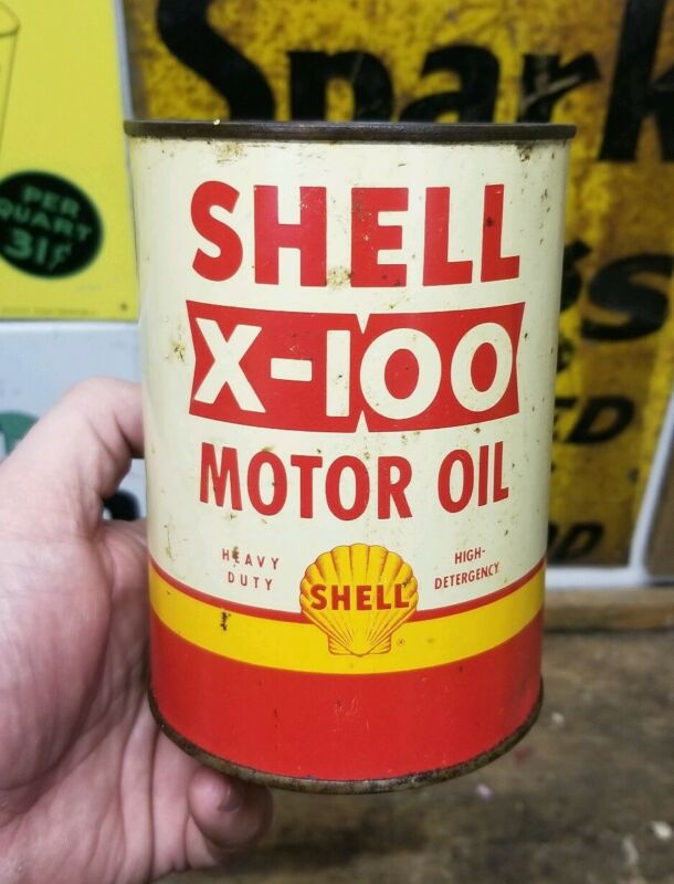 Title (ebay affiliate link): Vintage 1950''s Shell X-100 Motor Oil 1 Quart Metal Can Gas Station Sign