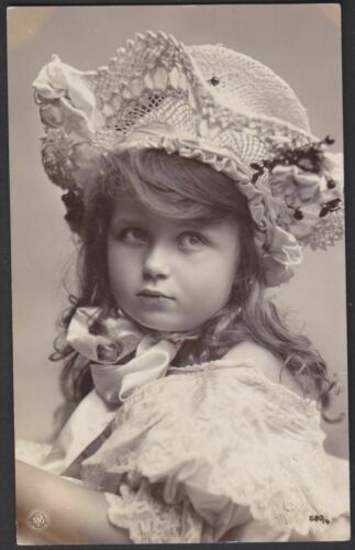 Lovely Edwardian child girl oranotypie antique real photo postcard 1919
