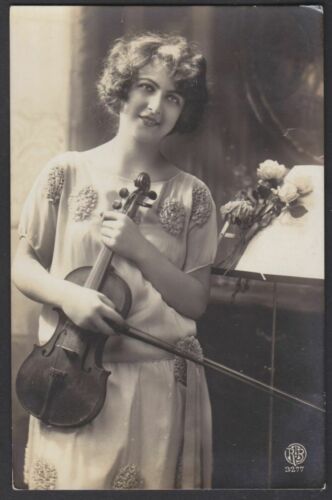 Title (ebay affiliate link): Art Deco Flapper girl playing Violin antique french real photo postcard 1924
